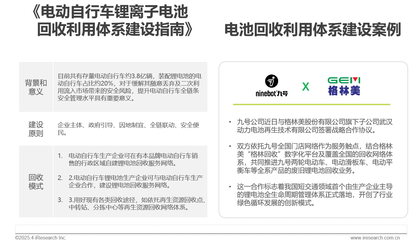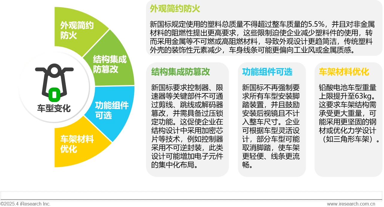 在新國標《電動自行車安全技術規范(GB 17761—2024)》的推動下,2025 年中國兩輪電動車行業正經歷著技術升級與市場格局的重塑。新國標提高了產品安全準入門檻,加速了行業向智能化、高端化方向發展,北斗定位、通信及動態安全檢測等技術逐漸成為標配。